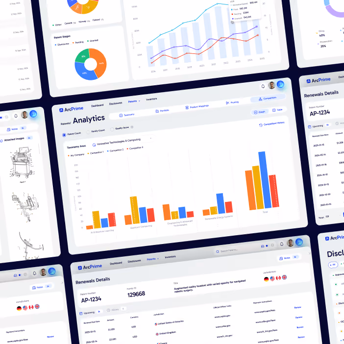 ArcPrime is an AI powered platform built to streamline patent portfolio management for legal teams and IP professionals. It centralizes everything from tracking global filings and managing renewals to monitoring budgets and deadlines — helping users stay organized, compliant, and efficient.